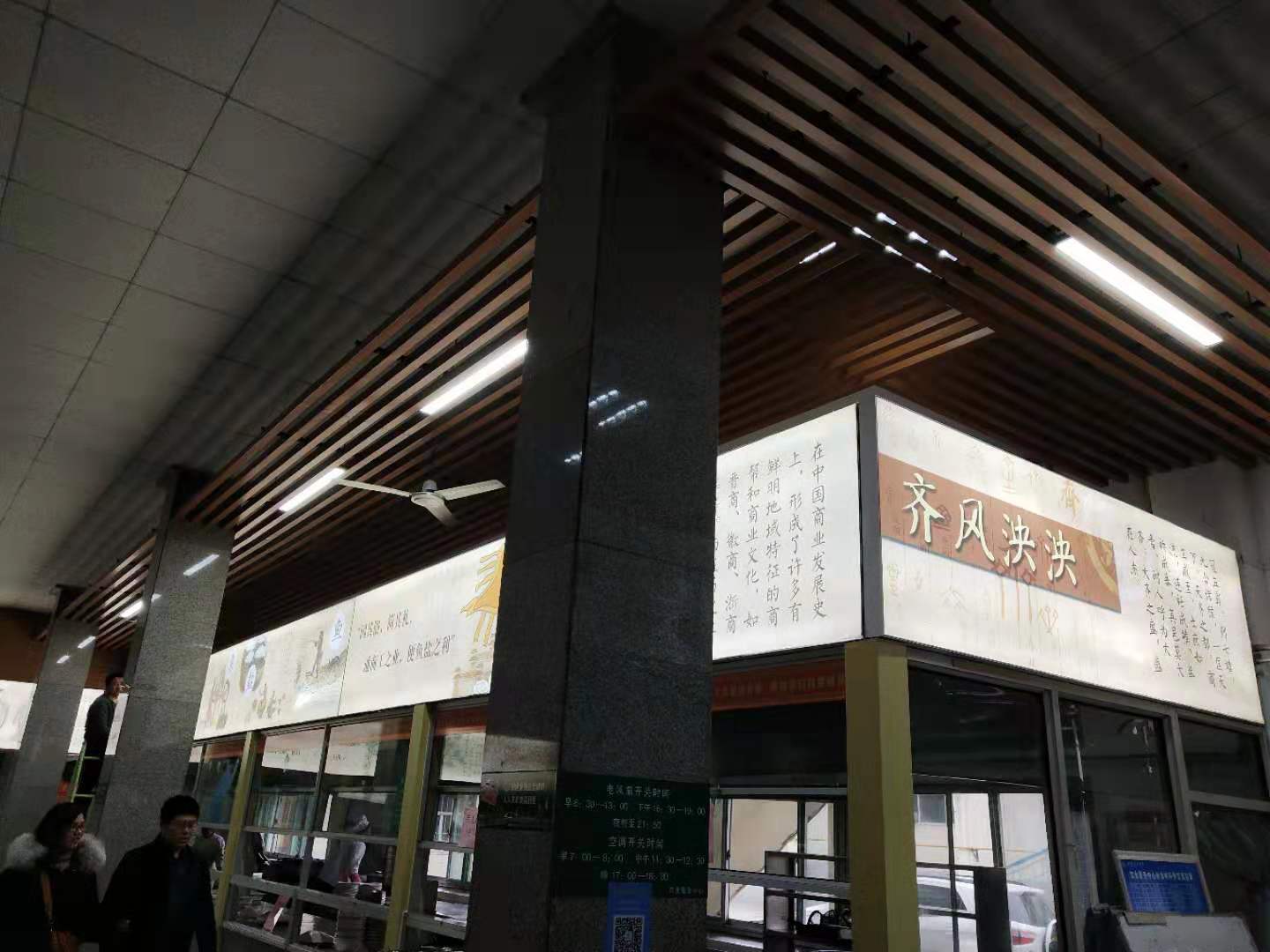 为改善山东理工大学东校区就餐环境,全方位发挥食堂文化育人功能,寒假期间,饮食服务中心自筹资金6万余元,打造南苑餐厅、北苑餐厅文化环境,焕然一新的齐文化灯箱引得就餐师生驻足流连。