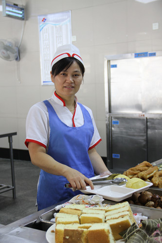 开餐前她认真核实每一个菜肴的标价,确保销售价格与实物一致,为其他同事的操作提供正确的标杆,也让广大师生的每一角钱都花得明明白白。由于菜价不是整数,对于初中学历的她来说,有时难免在每天数百上千次的窗口服务中偶有误打卡的时候,即使服务对象有没有发现,但是哪怕只是多刷了一毛钱,她都第一时间向师生诚恳道歉并进行退卡操作。