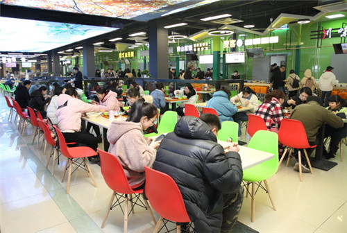 美食广场共设有18个风味特色档口,300余个品种的菜品和小吃,生煎包、小笼包、炸酱面、麻辣香锅、肠粉、麻辣烫、铁板炒饭、精品套餐等一应俱全,有效满足了师生对餐饮个性化服务的需求。美食城营业不久,就吸引了众多师生前来大快朵颐,新闻媒体也争相报道。