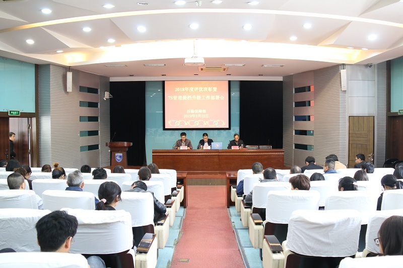 3月22日下午,后勤保障部在慎行楼从之厅召开2018年度评优表彰暨7S管理提档升级工作部署会。后勤保障部领导班子成员、各中心经理、全体党员、在编员工、主管以上员工、各经营实体负责人等参加会议。会议由副总经理何龙山主持。