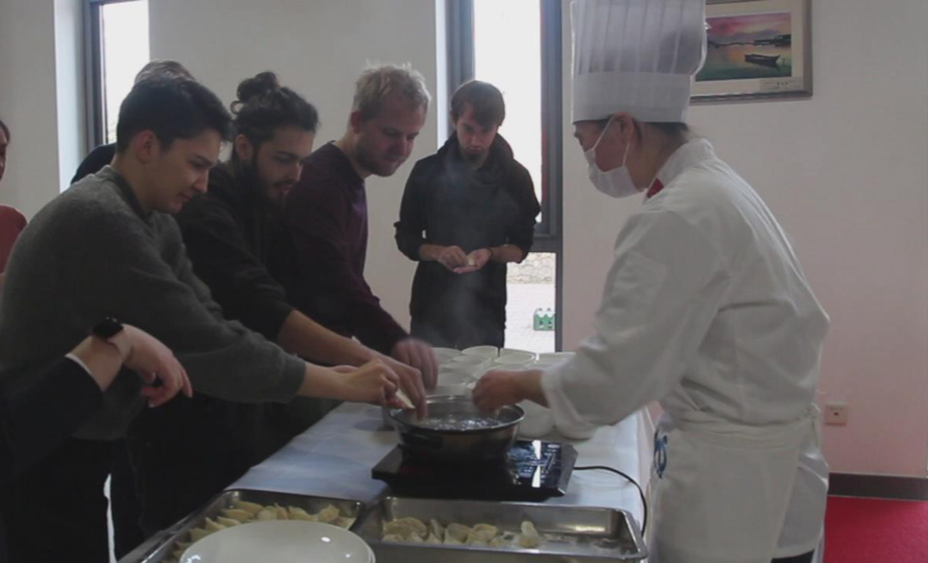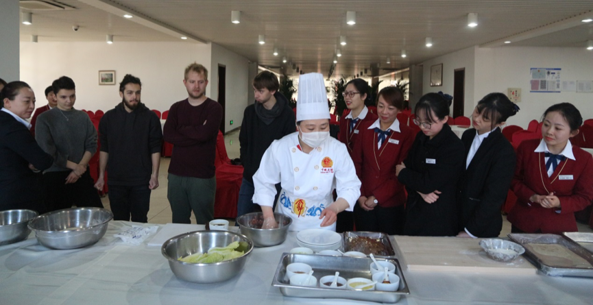 2019年4月1日,中国科学院大学中丹中心留学生们来到国科大国际会议中心,与会议中心员工一起,交流学习饺子制作技巧,感受中国传统饮食文化的魅力。