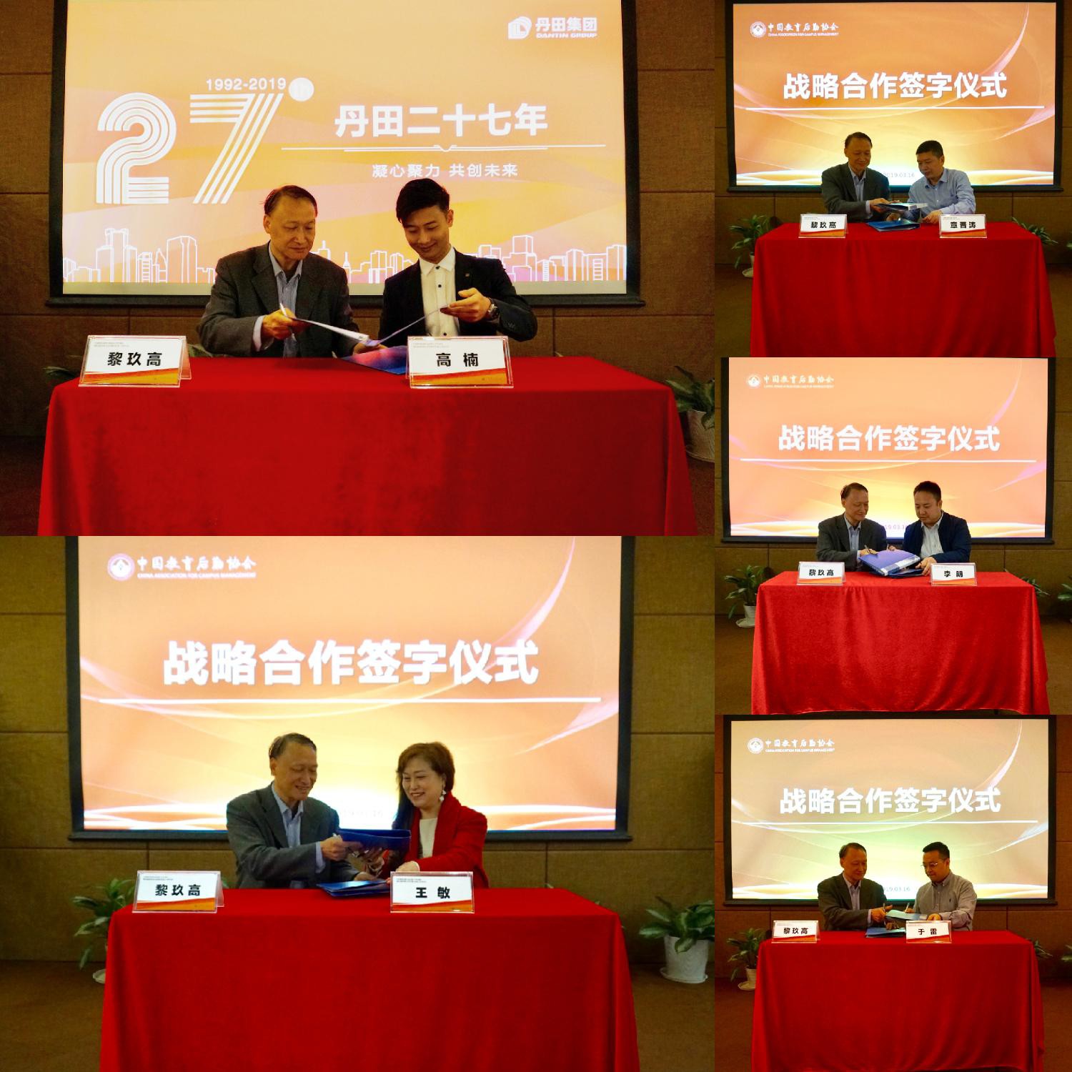 随后,进行会启战略合作签约仪式。签约仪式由中国教育后勤协会副秘书长、北京交通大学校长助理郑广天主持。参与本次签约仪式的企业有:珠海丹田物业管理股份有限公司、安徽九峰科技有限公司、北京易咖科技有限公司、海众家联设备租赁有限公司、广船环保科技有限公司。
