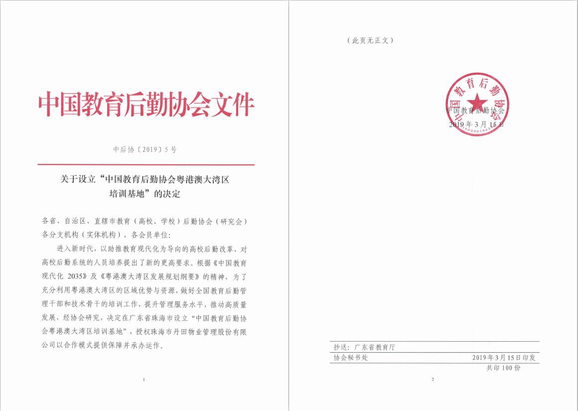 2019年3月16日,“中国教育后勤协会换届工作协调会暨校园服务新业态新模式拓展工作讨论会”在珠海丹田教育公园成功召开。中国教育后勤协会会长程天权、珠海市人民政府副秘书长周慧珍、政协珠海市委员会人口资源环境委员会主任梅运富、中国教育后勤协会常务副会长高聚慧、中国教育后勤协会常务副会长张柳华、中国教育后勤协会常务副会长张文忠、中国教育后勤协会副会长兼秘书长黎玖高、中国教育后勤协会副秘书长、北京交通大学校长助理郑广天、首都师范大学副校长李有增、沈阳大学副校长刘克斌、广西高等教育学会后勤管理研究会秘书长刘向、北京高等教育学会后勤管理研究会副理事长兼秘书长罗建新、山东大学后勤党委书记刘学祥、四川省高校后勤协会秘书长高庆、广东省高校协会领导代表、中山大学(珠海校区)总务处副处长许海舟、广东省高校后勤协会副秘书长余晓斌、上海复旦后勤服务发展有限公司总经理张珣、北京邮电大学后勤基建处处长王常军、哈尔滨工程大学后勤基建处处长李洪波、华中科技大学后勤集团总经理张国安、北京农业职业学院后勤管理处处长柏根才、中国教育后勤协会新业态及快递工作委员会执行主任高志东等领导出席了本次会议。会议由中国教育后勤协会副会长兼秘书长黎玖高主持。