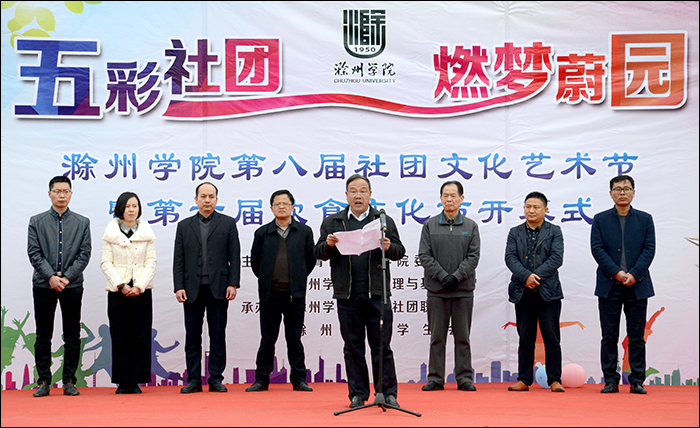 4月10日,由共青团滁州学院委员会联合滁州学院后勤管理处共同主办的第六届饮食文化节开幕。滁州学院党委常委、副校长吴开华,关工委主任宋发友,党委学工部部长、学生处处长郝德新,后勤管理与基建处处长王诗根、副处长屠磊,团委书记庚丽娜、副书记胡娜,党委宣传部副部长郑晓华,教务处副处长周强等与千余名学生代表参加了开幕式。