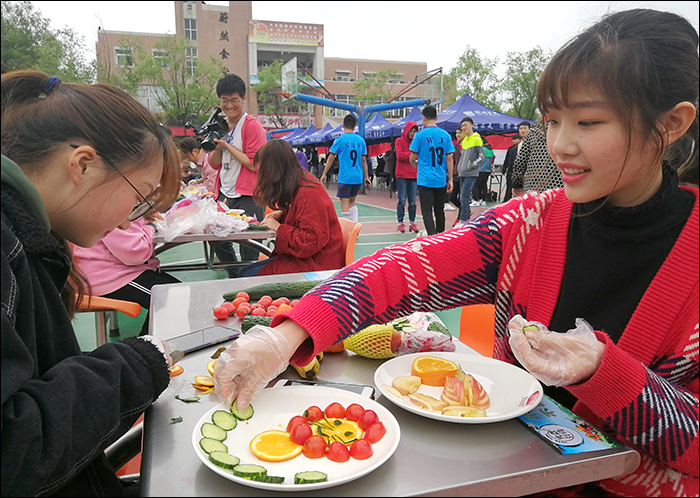开幕式活动现场,举办了精彩的文艺演出和水果拼盘比赛、包饺子比赛等活动,赢得了围观同学的频频点赞和阵阵掌声。吴开华等出席开幕式的领导和老师,也观摩了同学们的表演和比赛。