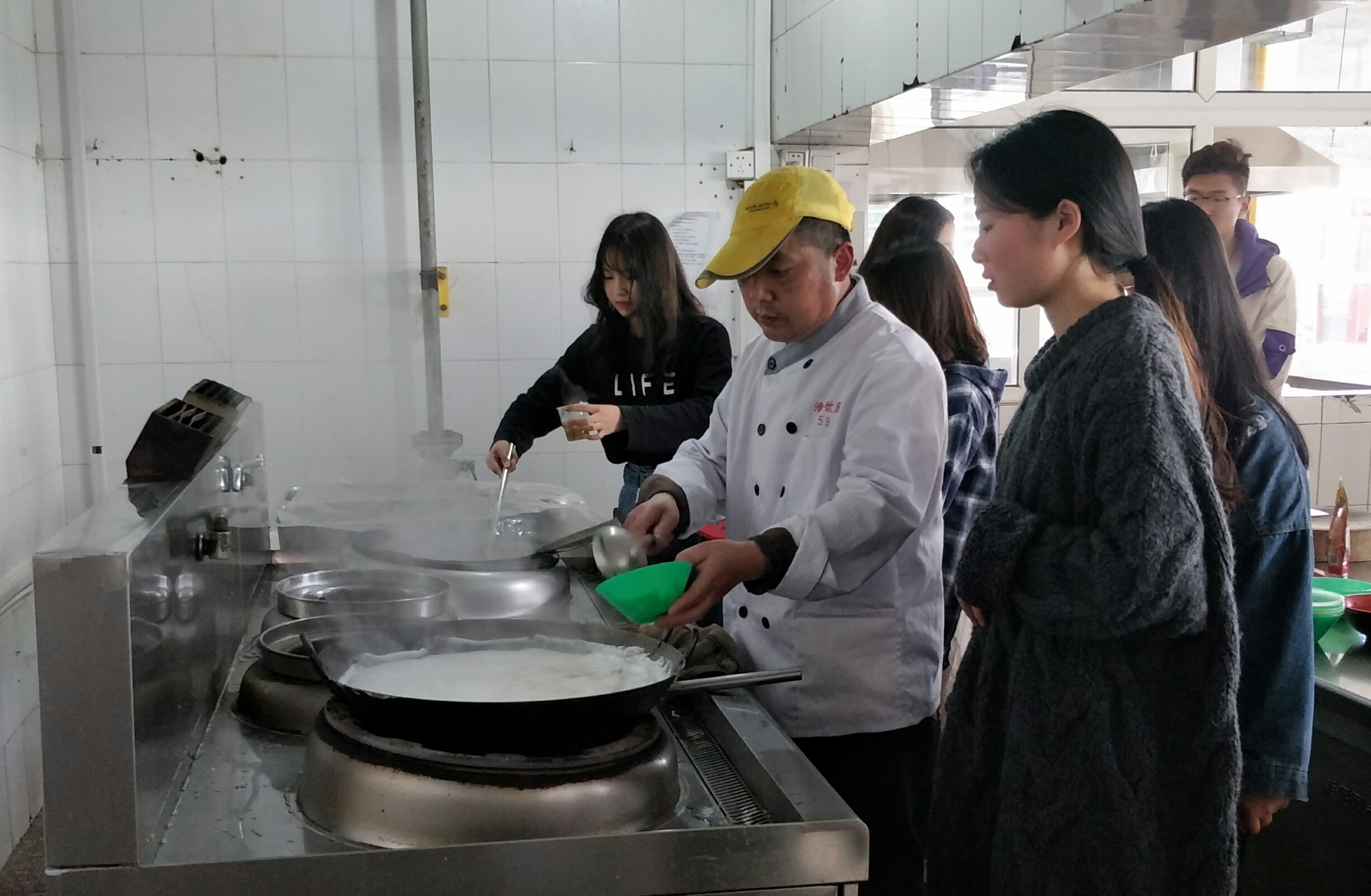 满树和娇烂漫红,万枝丹彩灼春融。此时正是桃花盛开的季节,当看到桃花时,不由得让大家想起热播的电视剧《花千骨》中的一道美食“桃花羹”。这不淮阴师范学院文学院美食协会与南苑二楼餐厅4月14日下午共同举办的“一起来做桃花羹”活动,让喜欢追剧、喜欢美食的同学踊跃参加。