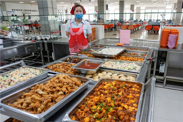 饭点一到,窗口便摆出了色香味俱全的“乡宴”架势:菠萝咕嘟肉酸甜诱人,水煮牛肉鲜辣入味,干炸响铃香脆可口,还有西湖醋鱼、剁椒鱼块、茄汁虎皮蛋。除了选出的6样菜品外,食堂还专门准备了水果沙拉、米粉粿和花生酥,希望给大家添一道饭后甜品。同学们拿着“爱的号码牌”陆续前来兑换,言语间涌动着快乐的音符,也深深感染了窗口服务的“后勤人”。
