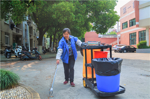 黄建容,嘉兴学院后勤服务集团物业管理服务中心的一名保洁员。一直以来,黄阿姨捧着一颗心来,不带半根草去,坚守在自己的工作岗位上,无论是在教学楼前、宿舍楼旁,还是湖畔的林荫小道,都能看到她弯腰捡白色垃圾的背影。炎炎夏日,是她在窗外挥洒汗水,为我们营造整洁舒适的校园环境;寒风凛冽,是她不顾手上攀长的皲裂,守卫这座孕育莘莘学子的校园。