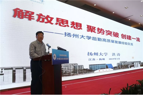 江苏高校后勤协会副会长、扬州大学副校长洪涛作专题报告