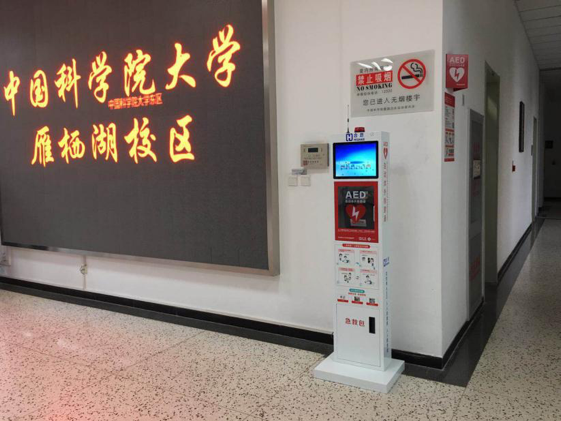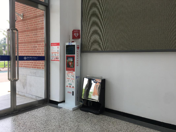 中国科学院大学(简称“国科大”)雁栖湖校区东西区的教学楼门口来了两位新朋友,它们看上去红白相间,躲在大门口的角落里毫不起眼,但是你一定想不到,它们是雁栖湖校园里的“生命卫士”,能在最关键的时刻,把在鬼门关徘徊的人们救回来。