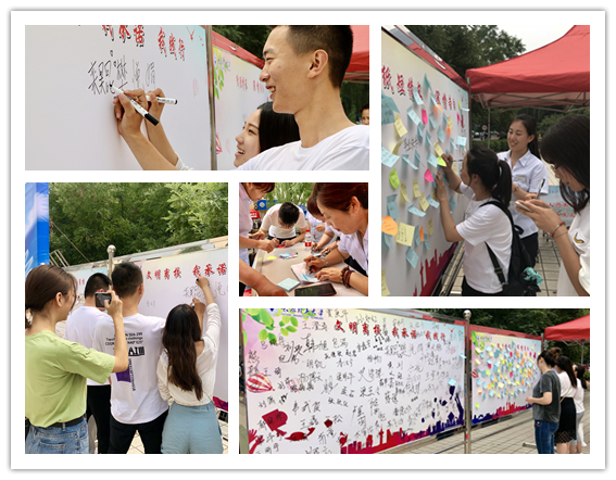 毕业学子在“文明离校,我承诺,我践行”签名板上,纷纷签下自己的名字,划上郑重的一笔;在“纸短情长、深情告白”寄语墙上,毕业生及员工用真情书写下不舍与祝福;在毕业生留影纪念墙前,同学们留下了最美瞬间,润泽理工校园。