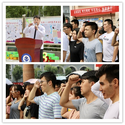 毕业生代表李鑫宇同学宣读毕业生文明离校倡议书,并带领同学们进行毕业生文明离校宣誓。全体毕业生代表庄严宣誓,许下离别诺言,践行文明离校。