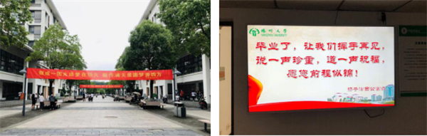 为了引导毕业生文明离校,充分利用校园网、学生公寓多媒体显示屏、微信、qq、横幅等进行广泛宣传,开展宿管阿姨给毕业生的一封信、离别赠言等活动,营造了良好的离校氛围。