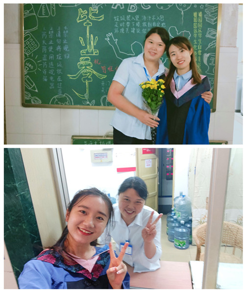 既快乐又不舍!橘园10舍值班员周旋与学生们合照的时候总是笑得特别开心,她说:“真的就跟自己的孩子一样,顺顺利利地毕业了,当然替她们开心,但一想到她们要走了,还是舍不得。希望她们以后都好!”