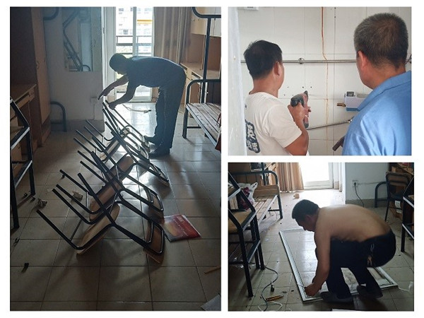 为了进一步提升校容校貌,在新学期给学生提供一个更舒适的学习环境,公寓维修部全体员工对722间新生寝室进行全面整修。目前为止维修家具3600套,修补卫生间门162扇,寝室大门120扇,更换学生椅子500只。除此之外,每天还要处理30多条学生的报修联系单。他们楼上楼下、一趟又一趟地来回穿梭着,在没有空调,没电扇的寝室里,常常都是光着膀子在干活,只为新生顺利入住。