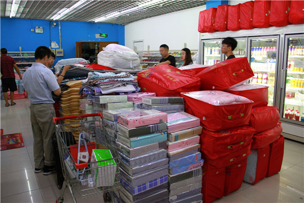 商贸服务,为新生提供便利的生活环境。商贸服务中心全力做好所有迎新接待点、家长休息区、家长临时休息地的桶装水和纸杯的供应工作,确保学生及家长饮用水充足;加强对校园经营秩序的维护检查力度,保障学生权益,让新生在校内放心购物,同时加大对快递服务中心的管理。