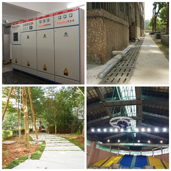 3#电房改造、 1-6栋水网改造 、 汀步铺设 、体育馆高空射灯修复
