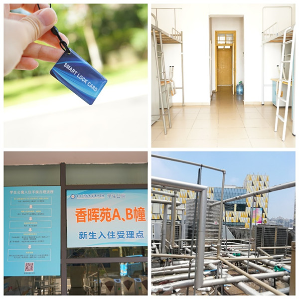 门禁卡 、 新生宿舍 、 新生入住指引牌、 热水系统管道