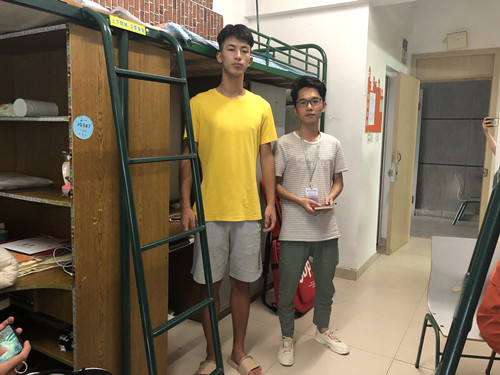 8月29日,博文苑6号楼迎来了一批新生,其间,体育学院1米95的陈辉同学混迹人群中,和周围人搭配着诠释了 “最萌身高差”。从小独立好强的他,喜欢体育,勇敢无畏,只身一人从福建来杭,在推开寝室门,看见自己那张已特殊处理过的床铺时,他有一瞬间的呆愣,而后感言“第一次离家住校,被这’与众不同’的床铺给暖到了,学校的服务很打动我…”。