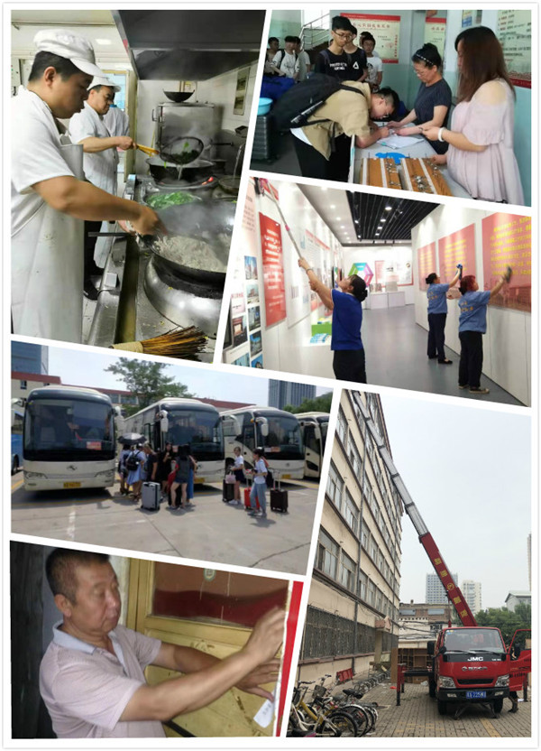 在这个假期里,后勤325热线24小时全天候值守;饮食部门在各校区均设置餐厅为留校的师生提供美食,炊事人员冒着达50℃以上后厨温度,严格按照操作流程进行食品加工,保障食品安全,为师生提供优质伙食;公寓部门在为留校学生提供住宿服务的同时,完成了2883间宿舍的打扫整理和宿舍设施维修工作,完成4151名搬迁学生和10207名新生的房源整合及安排住宿工作,在明向校区公寓增加26台自助洗衣机;动力保障完成了虎峪智渊餐厅电力增容改造、多个变电所的变压器更换,并完成了太原校区家属区2763住户自来水“一户一表”改造,组织召开了“远传智能电表试点工程汇报验收暨家属区远传电表工程(一期)启动论证会”,水电收费与学校财务微信平台对接,实现了微信支付、实时充值、财务归口、对账、用户实时查询等功能的完美结合,同时出色地完成了多次重大抢修任务;物业服务做好日常清洁保洁、垃圾清运工作的同时,加强对校园卫生死角的清理,让校园环境更加干净整洁,加强自习室管理,满足学生学习需求,并完成了明向校区行政楼130多间办公区的拓荒,协助各部门完成行政楼入驻工作;运输服务在明向校区安排每日两个班次、长风小区每日四个班次的班车值班;两个幼儿园坚持在暑假开展幼教服务,解决教工的后顾之忧;医务楼搬迁工作等也在有序推进。