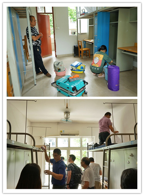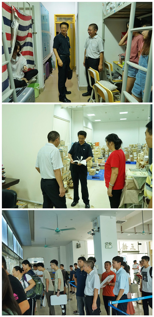 校领导及后勤保障部领导到迎新现场巡查、指导工作,到学生公寓看望新生。