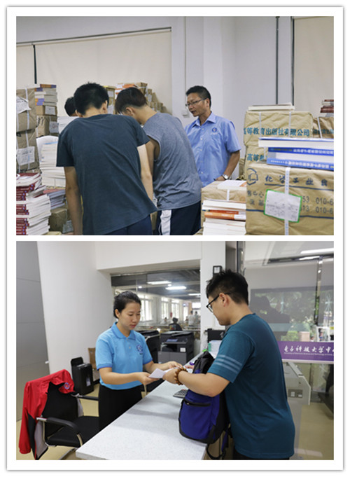 教材室的工作人员这几天坚守在岗位上,迎接着一批又一批来领书的同学,努力做到“零出错”,让大学顺利领到新书。文印室人员为新生耐心处理文件资料。