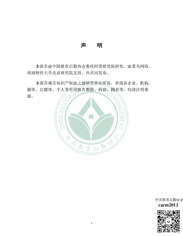 。报告由中国教育后勤协会委托阿里研究院研究,由菜鸟网络、西南财经大学北京研究院支持。