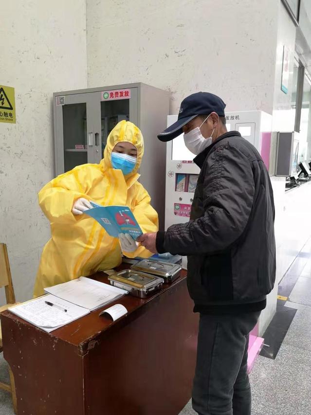 校医院分诊台工作人员进行分诊并宣讲疫情防护知识