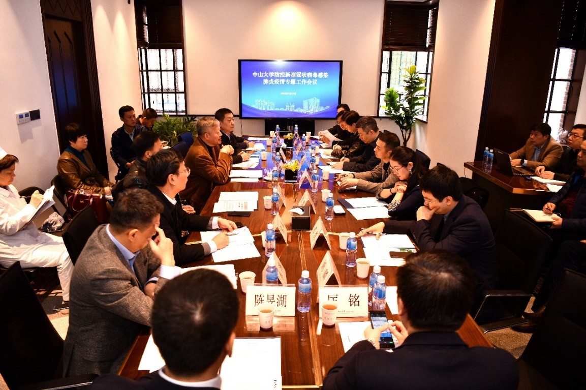 会议决定成立中山大学新型冠状病毒感染疫情防控领导小组,由陈春声书记和罗俊校长担任组长;成立新型冠状病毒感染医疗诊治专家小组,由肖海鹏副校长担任组长。会议明确附属第三医院作为此次疫情救治的牵头单位(定点救治医院),须协调多家医院共同做好隔离和救治工作,其他附属医院做好疑似和确诊病人的隔离及转诊工作;附属第五医院作为珠海市的主要救治单位(定点救治医院),要主动担当、积极配合珠海市政府开展防治工作。会议明确了各附属医院取消急诊、感染科、重症监护室及儿科等重点科室的医务人员的外出休假,在广州原地待命。