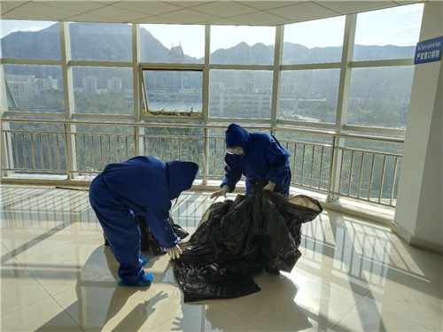 李丹姝后勤服务团队一共5人,分工明确,实行24小时值守。每个工作流程紧张有序,不能出现任何差错。拿隔离房间外的消杀工作来说,每天做3次:早上6-7点,对观察点大厅进行第一次消杀;9点30开始后的2个小时,对观察点每个楼层进行全方位第二次消杀;在消杀后一小时,再对存放垃圾点进行第三次小面积的消杀。