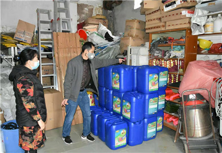 罗海峰组织物业人员领取消毒物资 安排工作人员进楼消毒
