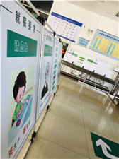 餐厅入口处设置醒目的宣传展板,包括就餐须知、就餐流程、六步洗手法、防护常识等,餐厅内售饭窗口显示屏提示安全就餐六字口诀,移动媒体反复播放就餐须知,墙上悬挂红色宣传条幅,全方位、多角度宣传普及疫情防控知识。