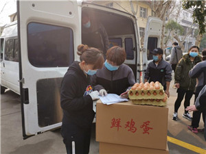 采供部作为商贸总公司抗疫的二线,却是保障超市运营的核心。春节期间疫情的突然爆发,给采供部门的工作带来极大的挑战。而此时采供部经理谭虹正身处宜昌,且宜昌和武汉两地均已封城,无法第一时间赶回学校。她通过电话、微信远程安排,保证各项采购工作有序进行。大年初六,谭虹同志在历经千辛万苦自驾“逆行”返回武汉后,立即投入到紧张的工作中。武汉封城致使大部分商品库存吃紧,她及时作出缺货、断货预判,前瞻性地备足货源。米面油及各种冷冻速必需品,全市各商超都面临供应不足的问题。采供部全体员工保持24小时开机状态,不分昼夜寻找货源,安排车辆蹲守厂家仓库,只要上游供应商来货就抢运回校。采供部员工关静,在做好采购工作的同时,为了缩短物资配送时间,无论早晚,都会骑着电瓶车,冒着寒冷,等候在学校东北门,保证配送车辆顺利入校,再引领其到达仓库或各个超市。为保障物资争分夺秒,为物资供应时刻准备着。