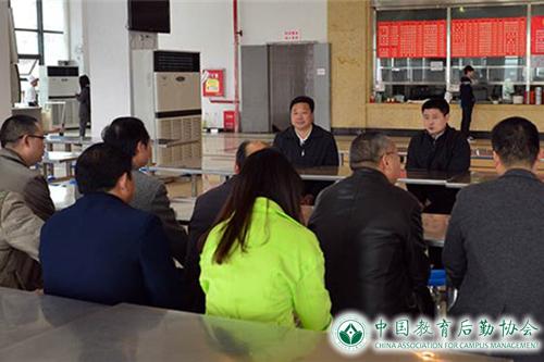 在最后一站南苑食府,实地查看之后,李林校长、袁革副校长召集随行人员在学生就餐座位上,召开了简短的现场办公会。由袁革副校长主持会议。