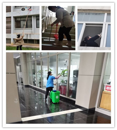 4月1日起,后勤物业、园林、维修等岗位全面复工,全面开展各项校园卫生整治和安全排查工作。园林绿化工人对校园内所有树木、色带、草坪等进行全面修剪清理,对缺损的色带和草坪等进行全面补种,进一步强化校园的绿化美化。外环保洁无死角地对校园内各干道、垃圾桶等进行全面的清扫,做到卫生不留死角。室内保洁也忙的不可开交,打扫楼道、擦洗地面、清理卫生间、对楼道窗户和浴室隔板门帘进行清洗等等,全力营造一个干净卫生的环境。同时,门卫和维修人员开始全面对学生宿舍和其他楼栋的公共场所的设施设备、漏水等情况进行全面排查和报修。维修人员及时到各维修现场进行查看,对需要集中维修的,及时组织开展各项专项维修,对于零星的维修项目,及时安排人员逐一进行维修。