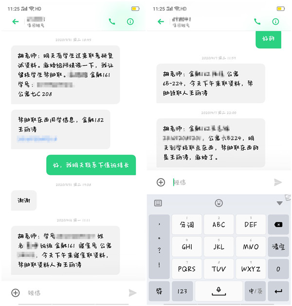 “老师,我研究生考试复试的资料还在宿舍,现在学校也不能回,怎么办啊?”“老师我找到工作了,可是就业协议还在寝室抽屉里,您能帮我进寝室拿一下吗?”“老师,我的笔记本电脑还在学校宿舍里可以拿一下吗?”最近,各二级学院的学工线老师收到了很多学生的诉求信息,如何帮助学生顺利取回寝室的物品成为了老师心中的一件重要事。面对同学们的诉求,宿舍管理服务中心及时与学工线老师沟通,学工线老师提前与值班楼长联系并协调进楼时间,再由值班楼长协助学工线老师到各个寝室拿取学生的相应物品,并拍照存档做好记录。