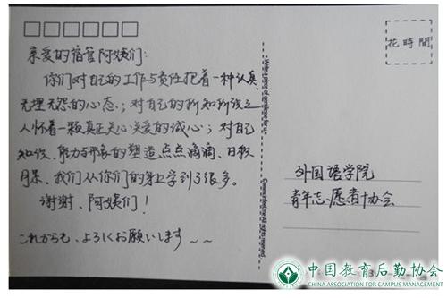 学生们的温暖举动和真情真意,是对值班员日常工作的认可,也是学生公寓进一步提高管理水平、服务质量的源泉和动力。人大后勤集团国内公寓部将在今后的工作中不断改进完善服务工作,为学生们营造更加舒适温馨的住宿环境。
