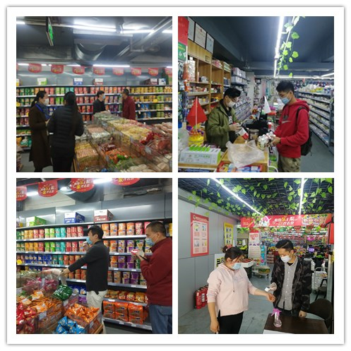 检查组对照校园超市的各项防控关键指标逐一进行了检查,包括消毒液、喷壶、口罩、额温枪等防疫物资的配备情况,鼓风机、通风口等新风系统的安装及使用情况等等,指导超市开展师生进店测温、员工服务戴口罩、日常消毒、保持营业期间的持续通风等,并严格按照市场监管部门的要求划设了等待线,提倡支付宝、微信等线上支付方式,全面清理过期食品,为师生营造安全可靠的购物环境。为了满足学生在校封闭期间的生活需求,超市还专门补充了生鲜水果、方便食品、小百货等日常生活必需品。要求超市经营方做好从业人员的每日健康打卡督促。
