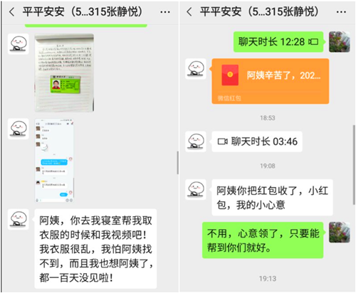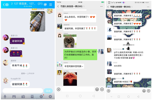 杨阿姨刚50出头,孩子已经工作,“她们比我的孩子还小几岁,如果孩子在外地读书,这么久不去,我也会担心这些,帮忙收拾收拾也没啥。没想到她们会送花给我,特别激动,特别开心!”杨跃洪发自内心地感动说:“这些娃娃真的就跟我自己亲生的一样,哪个对自己的娃娃好是想着她们回报嘛。”杨阿姨开开心心拍了照,还发到值班员群里“显摆”。