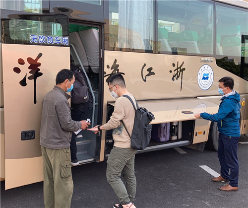 4月29日起,学生分批错时错峰返校报到。为确保学生安全返校,避免路途中过多接触,交通服务中心根据学校复学工作安排,分别在定海盐仓客运中心和临城公交总站设置接站点,接学生返校。