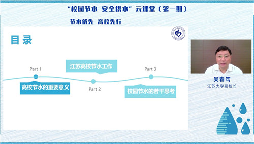 全国能专会副主任、江苏省能专会主任、江苏大学副校长吴春笃教授作为专家,做了题为《节水优先 高校先行》的专题报告。