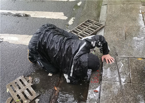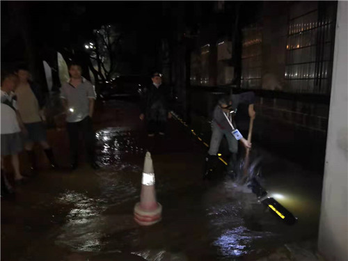 近期,长沙暴雨频发。6月9日晚,狂风大作,暴雨倾盆。铁道校区足球场挡墙被冲塌,梧桐路上的沟井盖和创业楼北的水泥井盖被冲开,巨大的水流从井口喷涌而出,一片汪洋,各种险情对校园内的行人及车辆带来隐患,情况万分危急!铁道零修站的师傅们顾不上大雨,毫不犹豫地参与到这场战斗中来。站长杨进宇带领大家一边设置路障,劝阻行人、疏导车辆,重点防范暗沟井槽位置;一边扒开所有阻水的沟井盖,清除阻塞物,疏通管道;王亮、甘福秋等同志趟进深余半米的臭水中,徒手疏通水道。狂风暴雨抽打在师傅们的身上,大家全然顾不上,心里只有一个信念:绝不能让师生员工的人身安全受到伤害,一定要把财产损失降到最低。