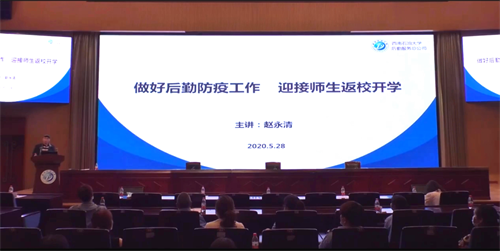 西南石油大学后勤党委书记带头讲微党课。5月份在学校图书馆报告厅,赵永清以“做好后勤防疫工作、迎接师生返校开学”为主题给后勤近270名一线党员、职工讲了一堂战“疫”课。赵永清结合“四川省高等院校新型冠状病毒肺炎防控指南(第二版)主要内容”,以“七案七制三流程”核心内容为切入点,结合我校后勤实际情况,为大家讲解了后期防疫工作的重点、难点,对疫情期间后勤员工持续做好清洁消毒、门岗管理、师生食堂就餐管理、后勤员工自身健康管理及体温异常处理等疫情防控五个方面的工作流程、工作规范提出要求,对战斗在一线的党员、职工如何履行好岗位职责,展现后勤党员、职工良好形象提出明确要求。要求每一名后勤一线的党员、职工务必熟悉本中心防疫工作流程、规范操作,把自己的防疫岗位职责做到位,努力做到早发现、早报告、早隔离,最终实现把疫情风险降到最低,在做好自身防护措施的基础上,确保师生健康安全,在平凡、细微处发挥党员的先锋模范作用,体现后勤人的责任、担当、温馨、周到。