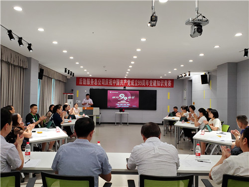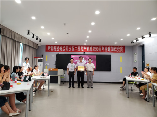 7月9日下午,西华大学后勤服务总公司在教学楼3E-105举办了庆祝建党99周年党建知识竞赛暨党员“政治生日贺卡”颁发活动。西华大学副校长刘小兵、党委组织部副部长邱刚应邀出席活动。后勤服务总公司全体领导班子成员、各党支部书记及部分党员代表共计50余人参加活动,整个活动由后勤服务总公司总经理助理王丽组织。 >