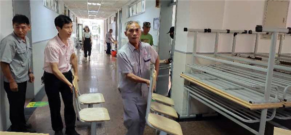 考试结束后,物业管理服务中心保洁部的员工们又开始加班加点,投入到考场恢复、椅子搬运、卫生清扫等一系列教室复原工作中。周到贴心的的后勤服务保障工作,给来嘉的考生和家长留下了深刻印象。