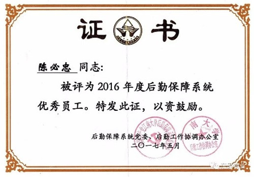 在江南大学2016年度的后勤保障工作中,东吴保安为江大校园的交通秩序、环境改善、安全稳定做出了突出贡献。回顾2016年度的安保工作,项目部在公司领导的正确领导下,由开始的筹建开荒,到项目的正常运转,再到服务品质的提升,每一步工作都凝聚着东吴人的心血。虽然受到表彰的是陈必忠和邓祥生两个人,但其实这份荣誉的背后离不开每一位东吴员工的努力。