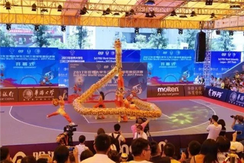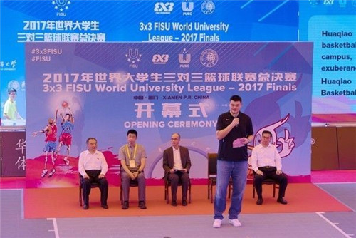 9月14日,项目团队迎来了接管以来的第一次小考——世界大学生三对三篮球赛。来自23个国家和地区、29所大学的32支代表队伍齐聚华大,中国篮球协会主席姚明出席开幕式。