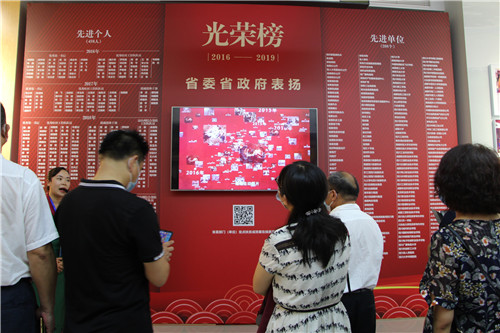 成效展设在科技馆二楼,以序言开始,既组织保障和扶贫作战图后,具体从“聚焦·村退出”、“瞄准·户脱贫”、“派出·战斗队”、“下足·绣花功”和“共建·强堡垒”五个方面展示帮扶成效,最后是大幅的红色光荣榜,上面记满了2016——2019年获得省委省政府表扬的208个先进单位和458个先进个人名单。整个展览,通过一个个感人镜头、一幅幅生动图片,集中反映2015年至2020年省直部门(单位)定点扶贫成效和助力脱贫攻坚的奋斗历程,展示党员干部“不忘初心 牢记使命”的责任担当。为全面实施乡村振兴战略、推进治蜀兴川再上新台阶凝聚强大正能量。