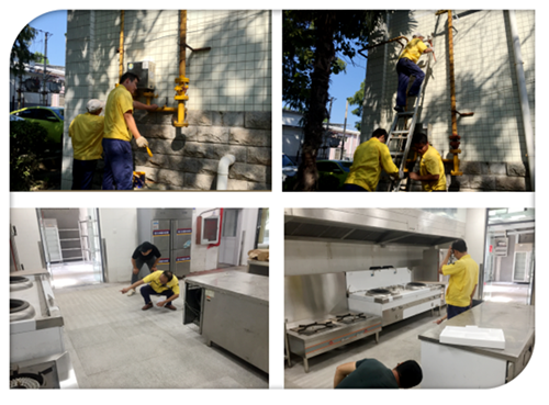 专家指导,密集安检维护。新学期开学前夕,后勤处主动邀请新奥燃气公司为学校提供全面安检和点火服务。安检人员从管道是否泄漏、室内外管线是否生锈腐蚀、切断阀运转是否正常和泄漏报警器是否处于运行状态等方面进行排查,在确认符合安全供气条件后进行灶具点火。同时普及安全用气常识,确保学校开学后“用气无忧”。