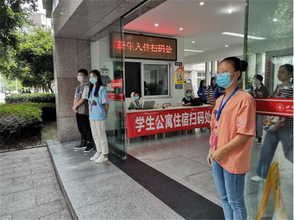 “亲爱的同学,请到新生入住扫码处办理报到手续哦!”“叔叔阿姨,请您留步,您就放心让学弟学妹们自己前往办理相关事宜啦。”“钥匙领取处在这里,请大家保持间距、有序排队”“扫码关注‘川农后勤’,四年里你总要用到的智慧后勤”……每一句温馨提示都传递着志愿者们帮助新生快速办理入住手续、适应校园生活的暖暖心意。“到校前我们就听说川农大是一个学风好的学校,没想到在报到之初还遇到了如此热心的师兄师姐,来年我也要服务学弟学妹们!”一名新生激动地说道。